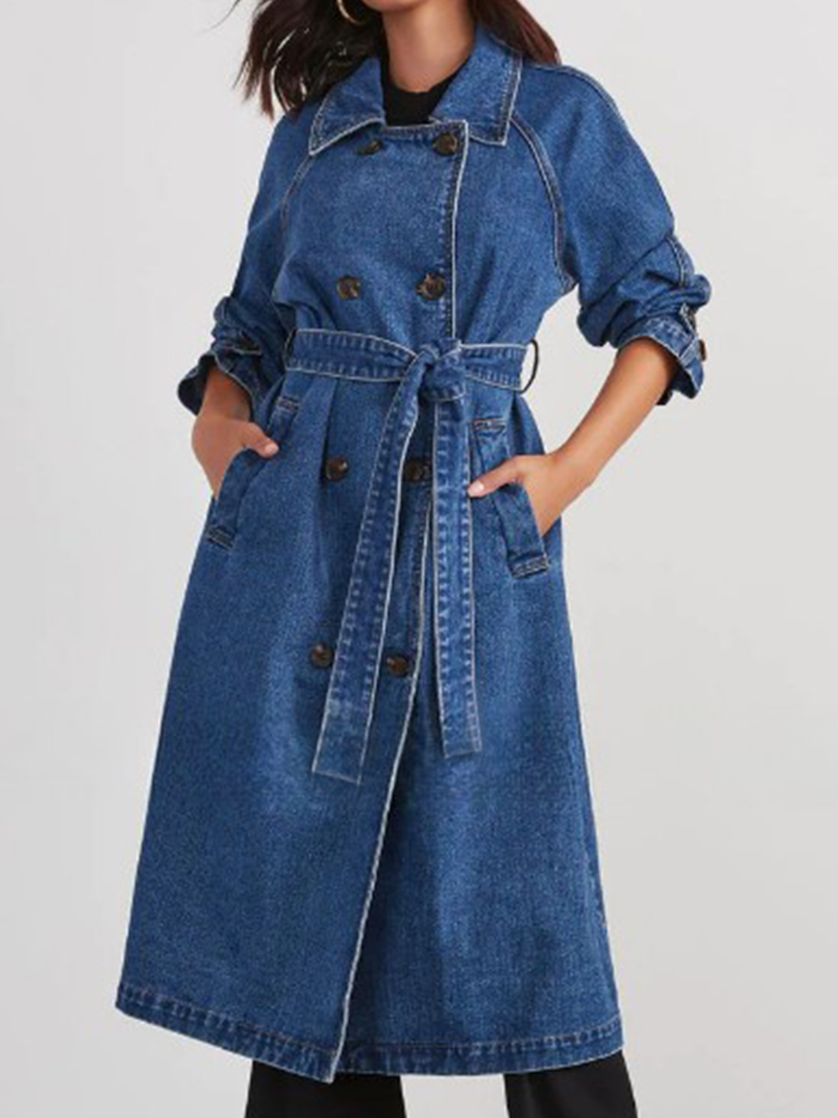 Loose Casual Vintage Print Lapel Long Sleeve Coat