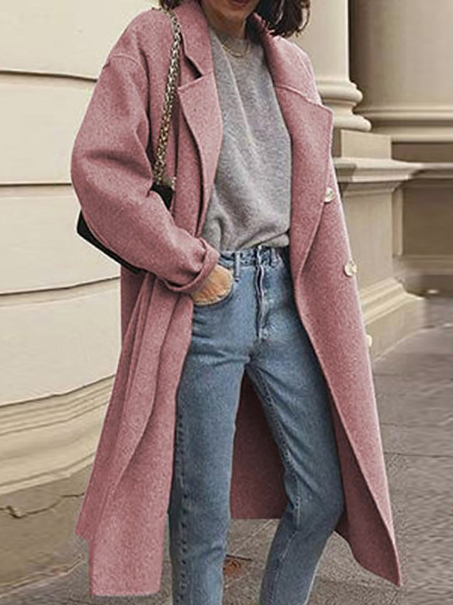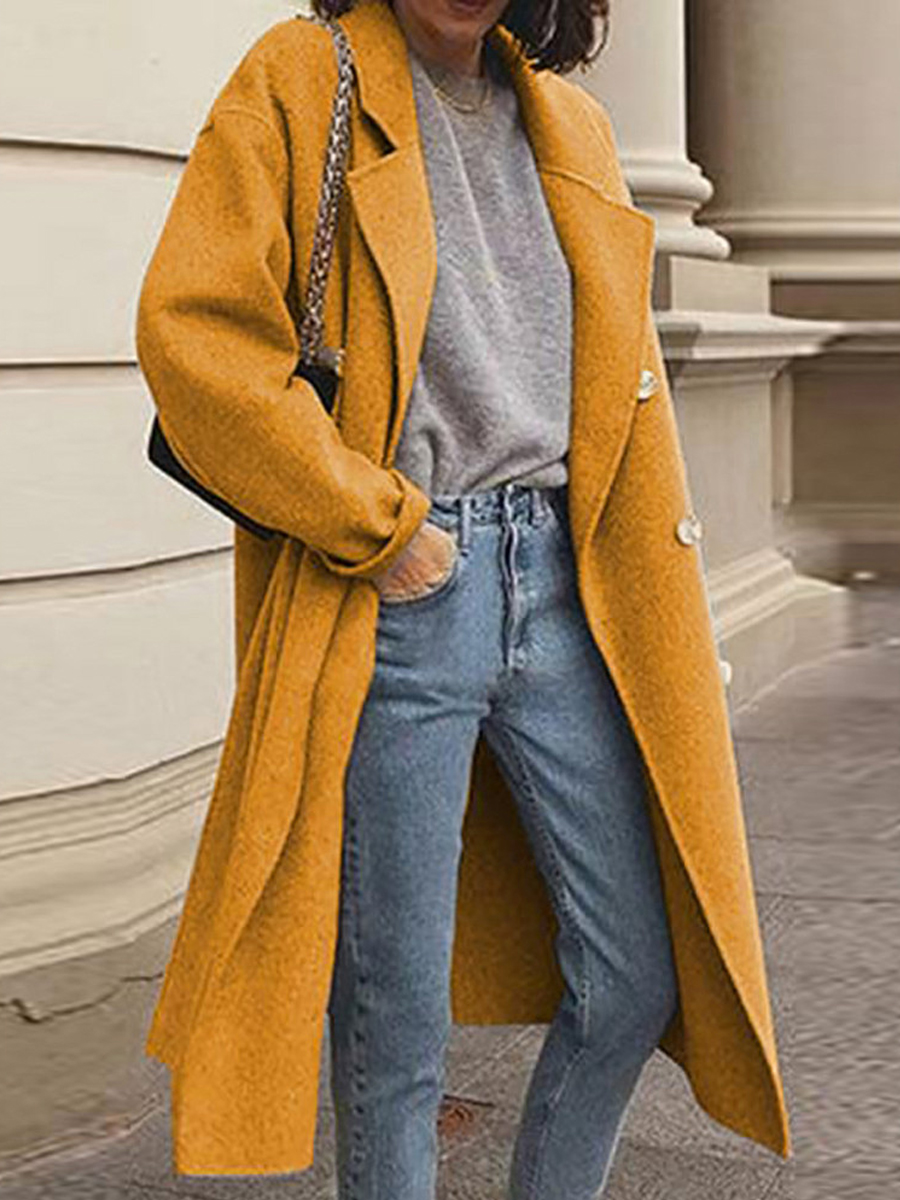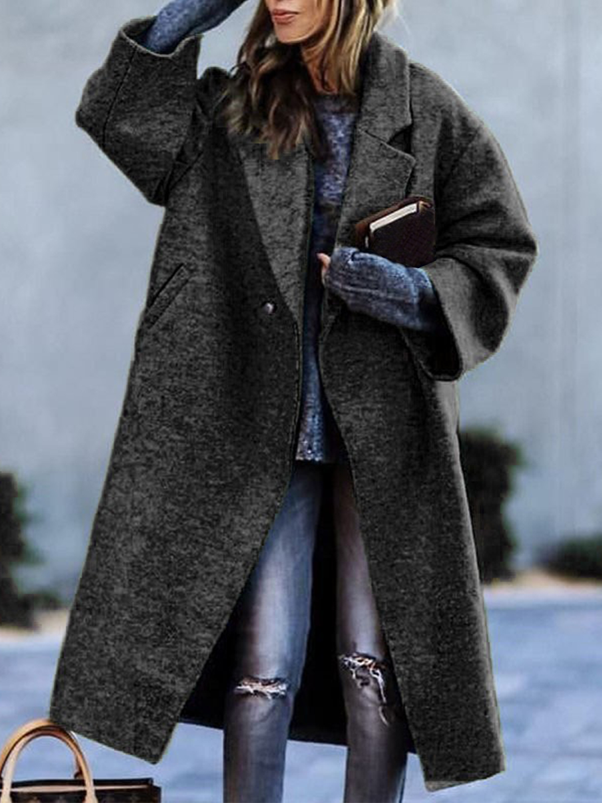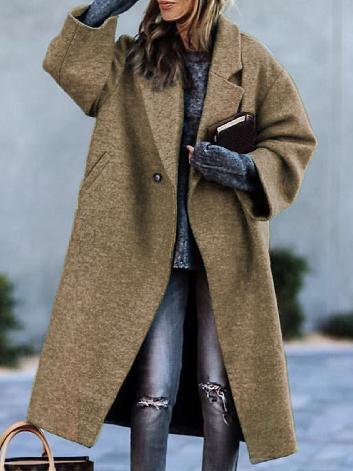 Solid Color Woolen Casual Lapel Mid-length Long-sleeved Coat