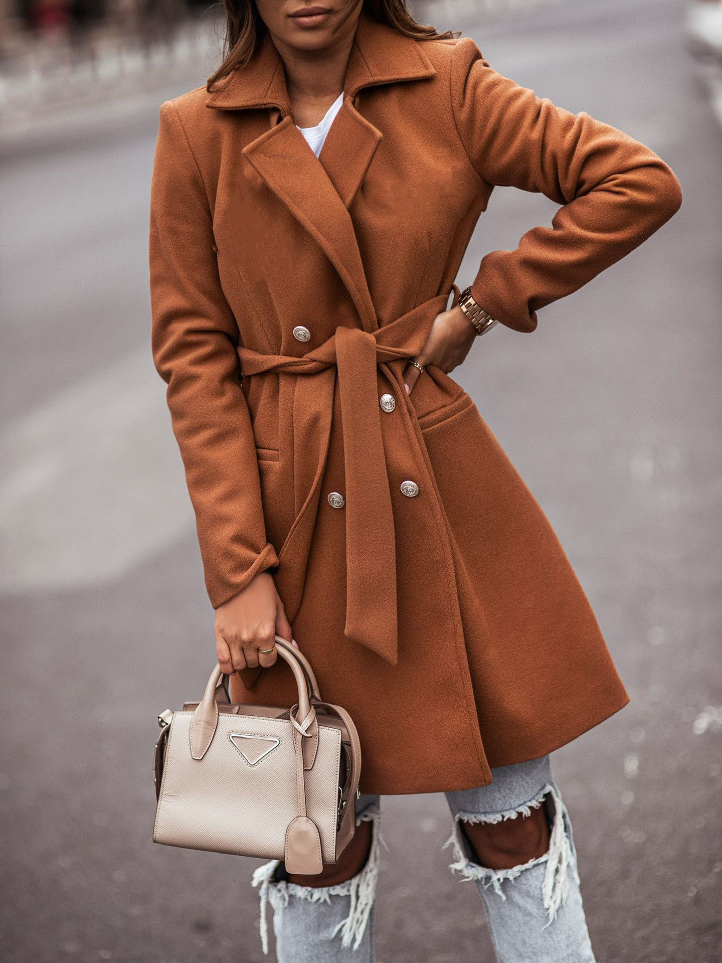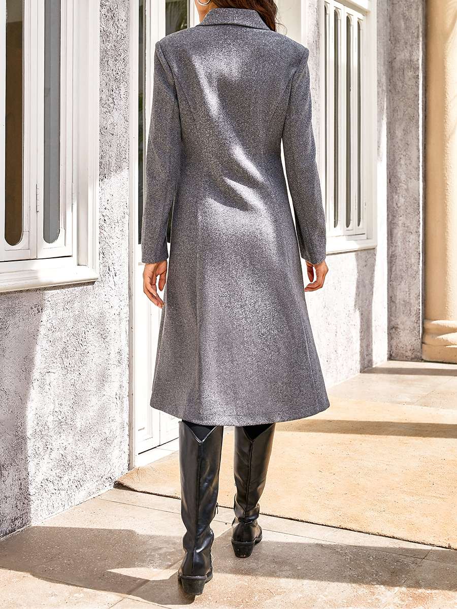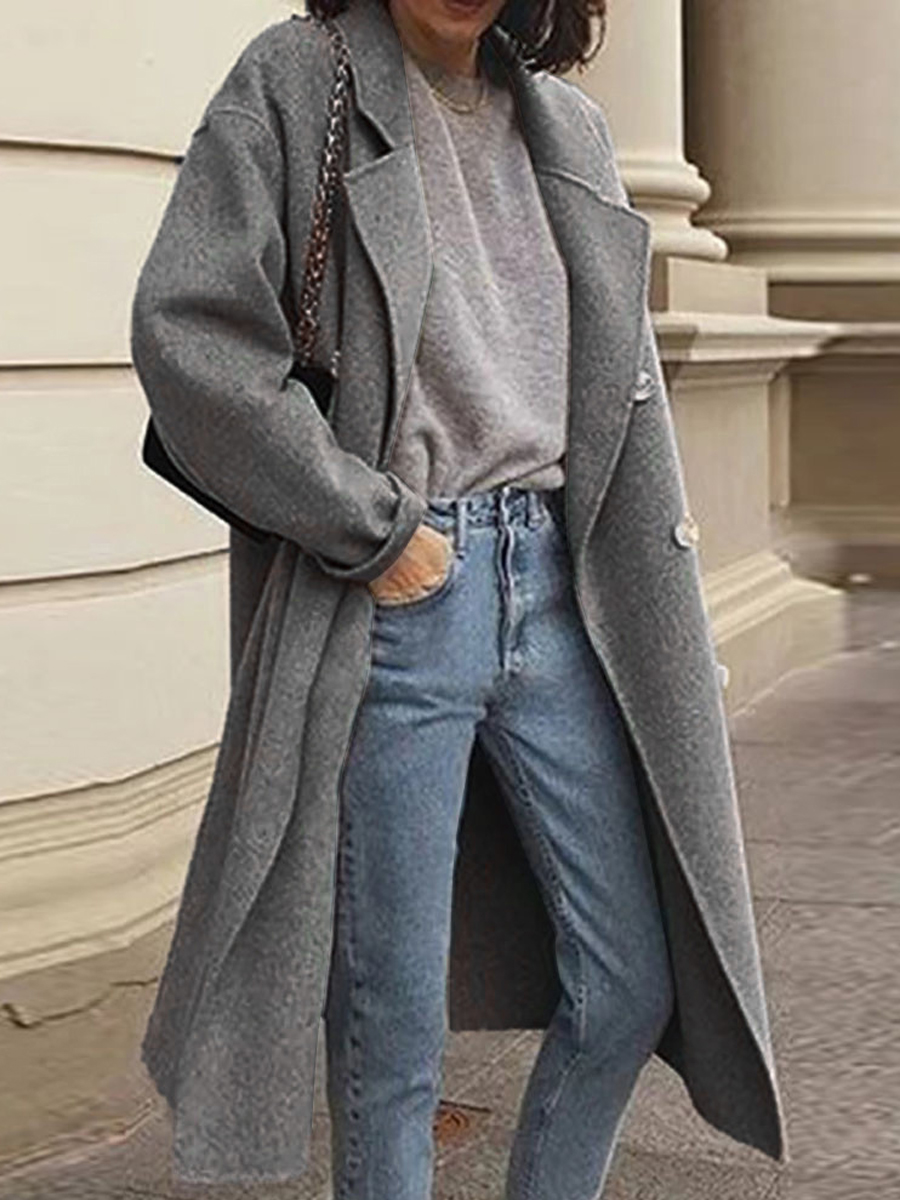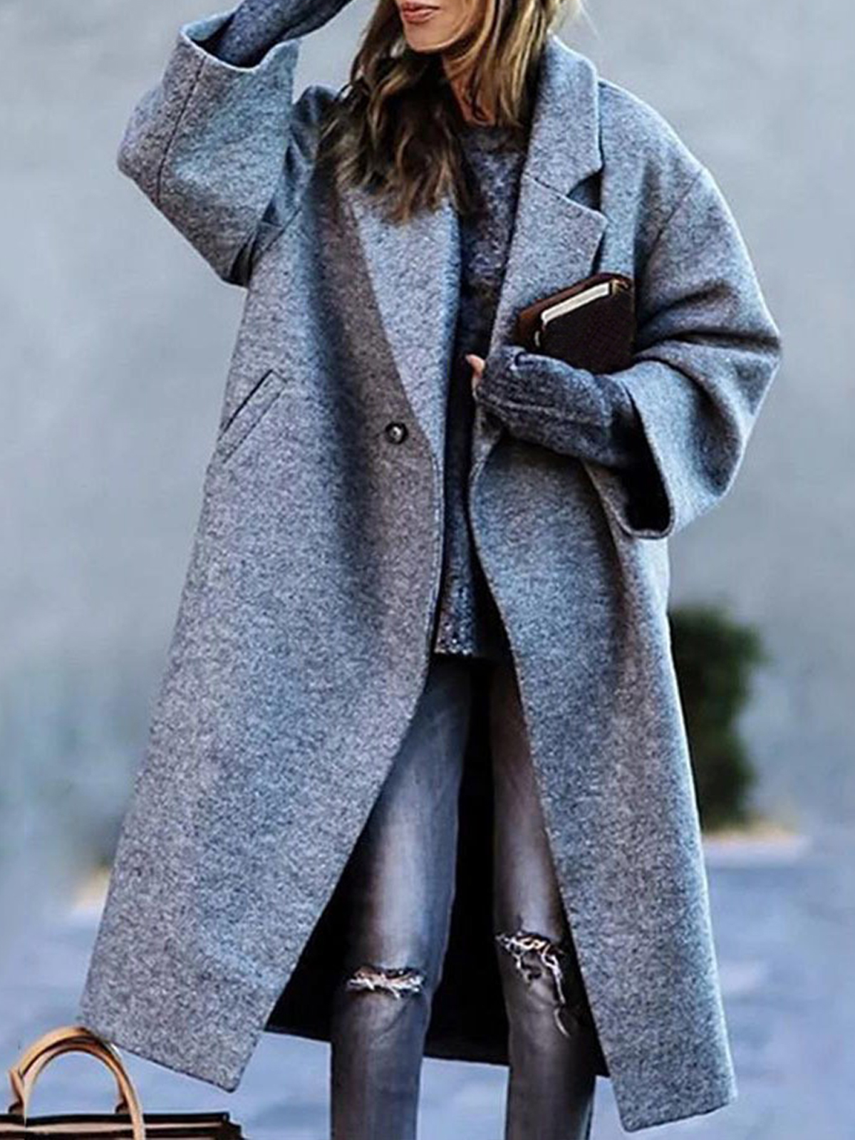 Solid Color Woolen Casual Lapel Mid-length Long-sleeved Coat