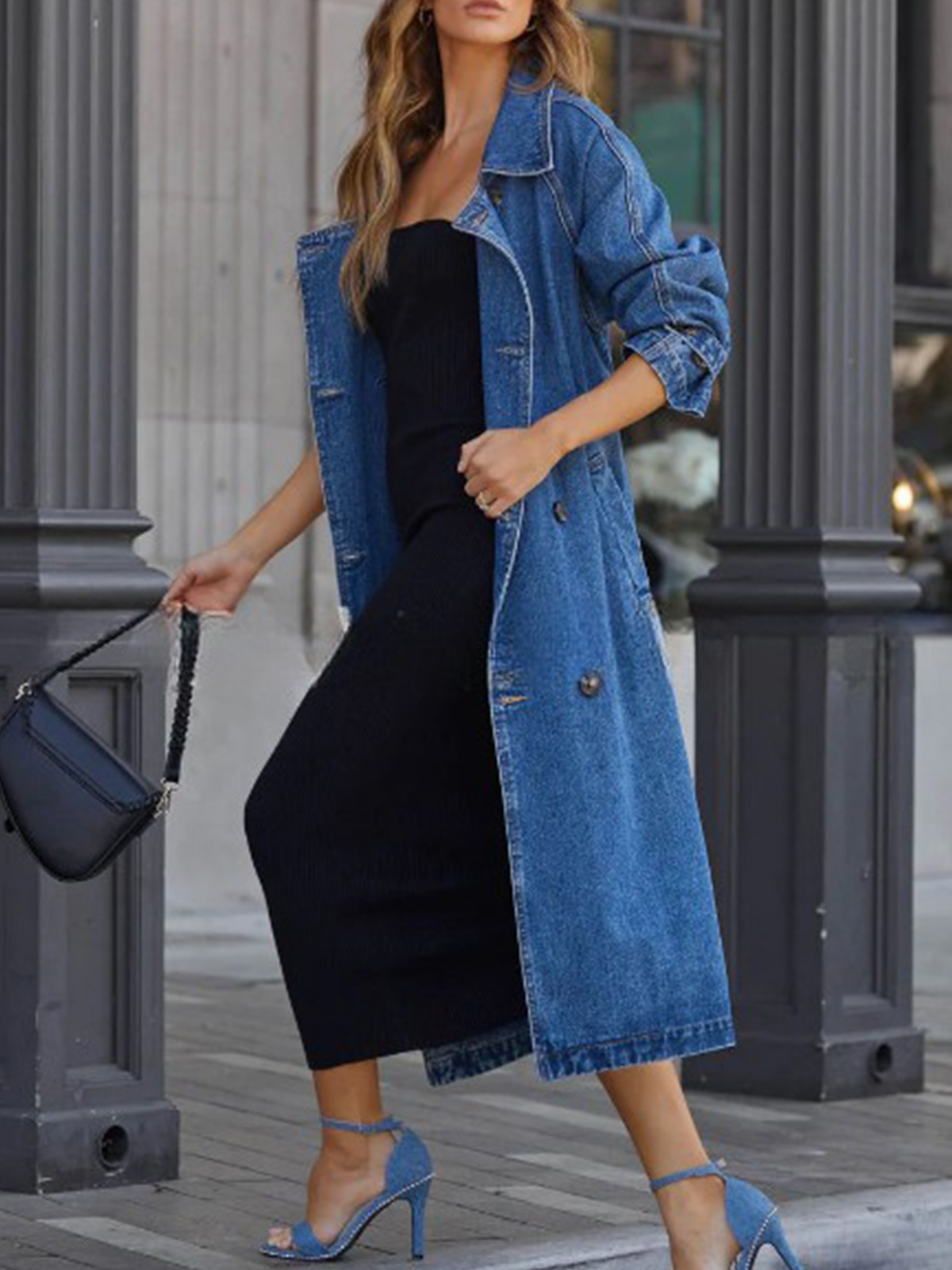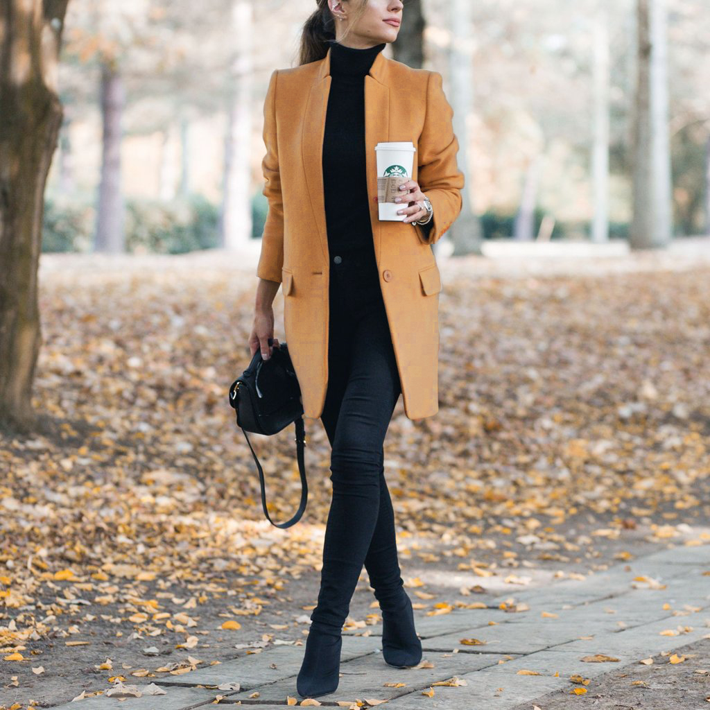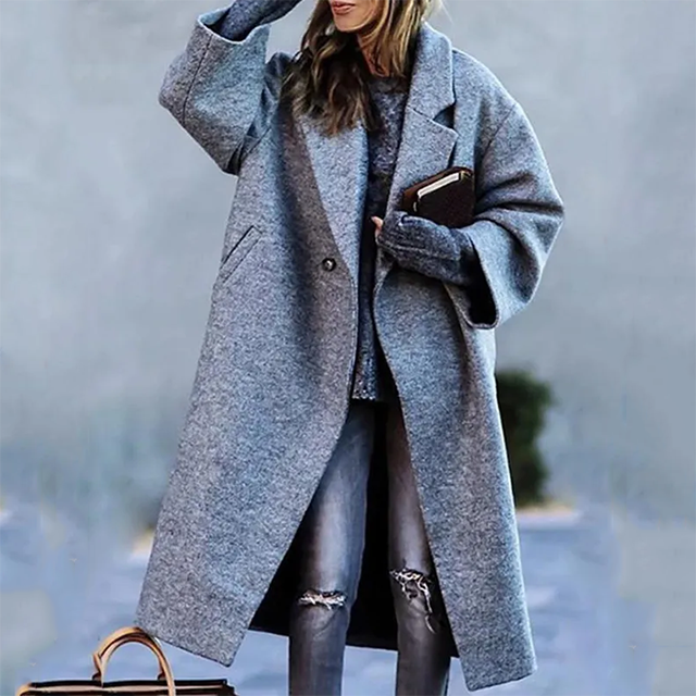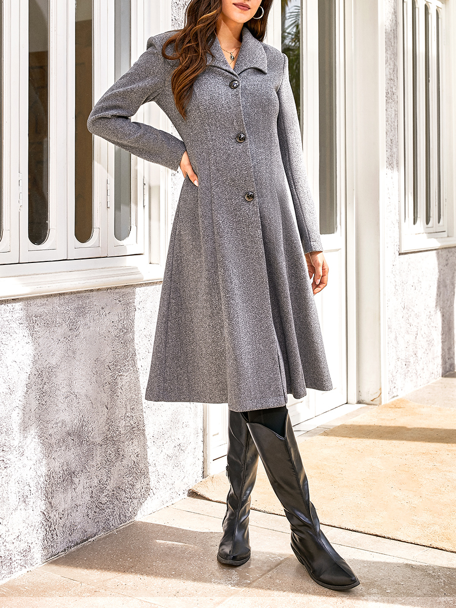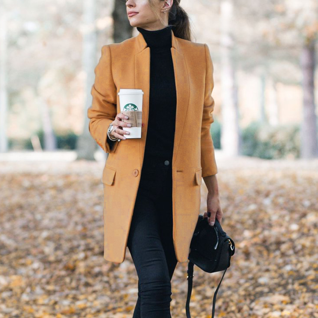 Solid Color Woolen Casual Lapel Mid-length Long-sleeved Coat
