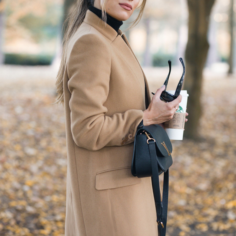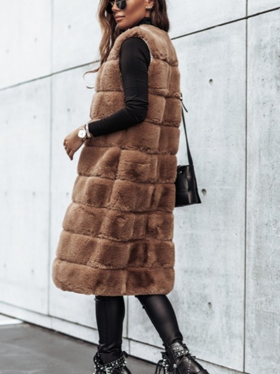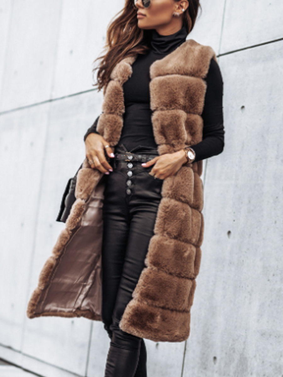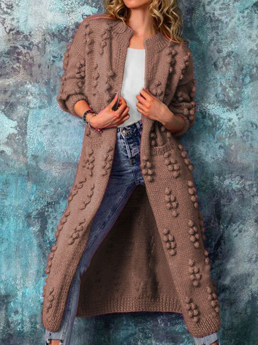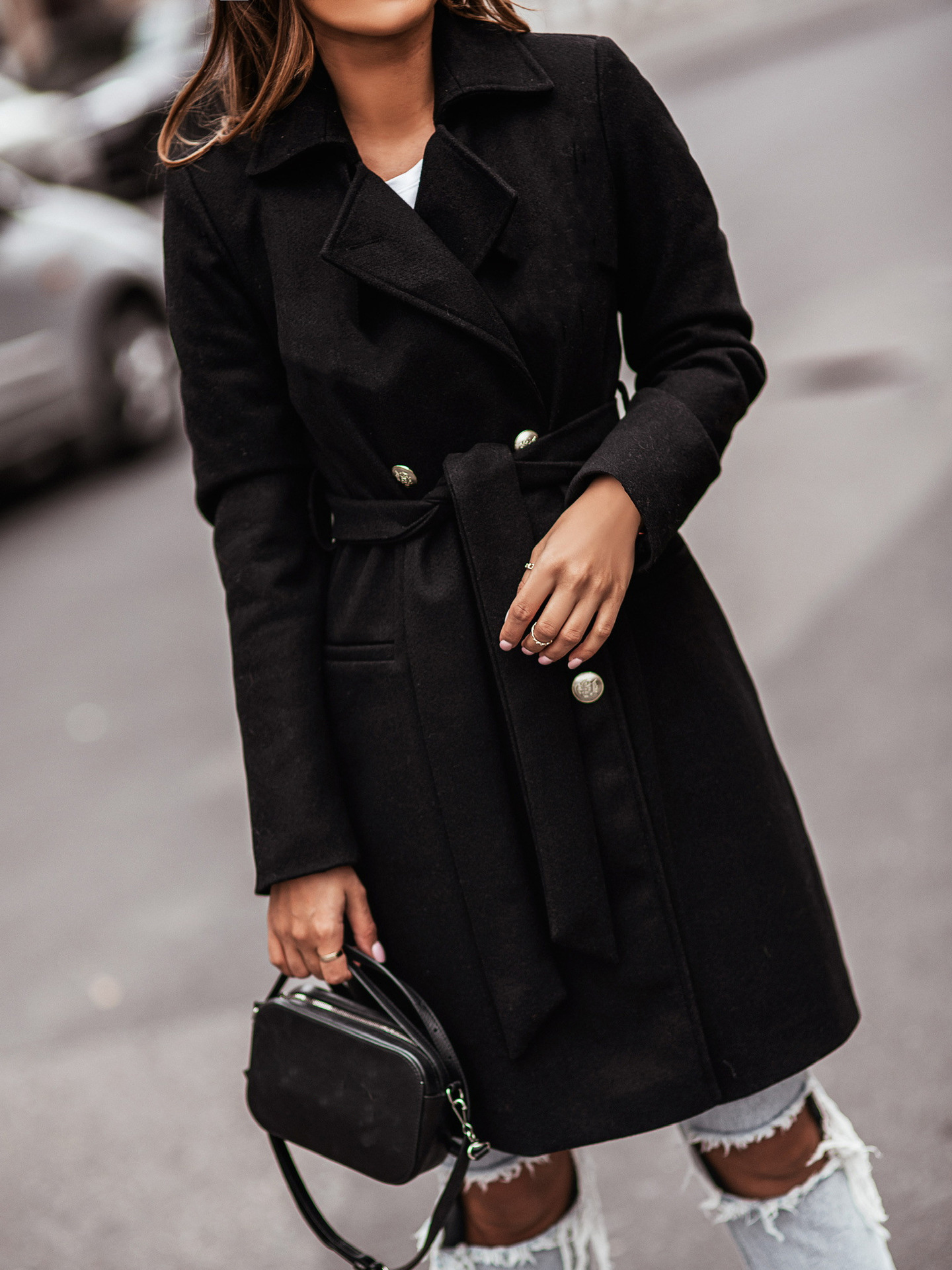 Solid Color Woolen Casual Lapel Mid-length Long-sleeved Coat