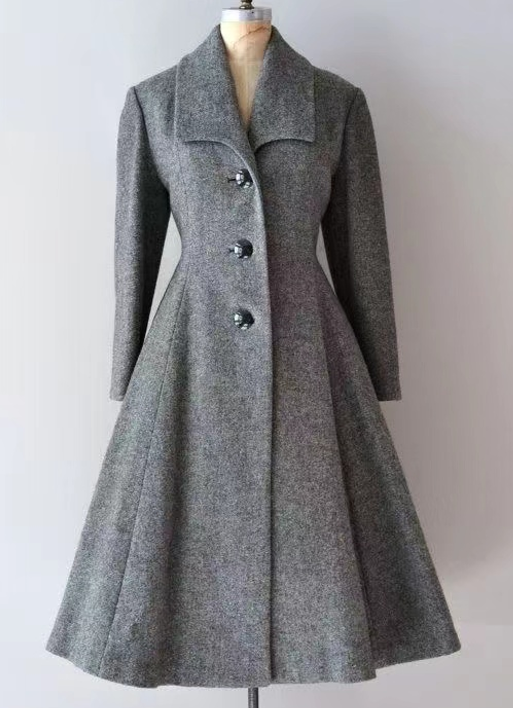 Women's Retro Abstract Print Thick Mid-Length Woolen Coat