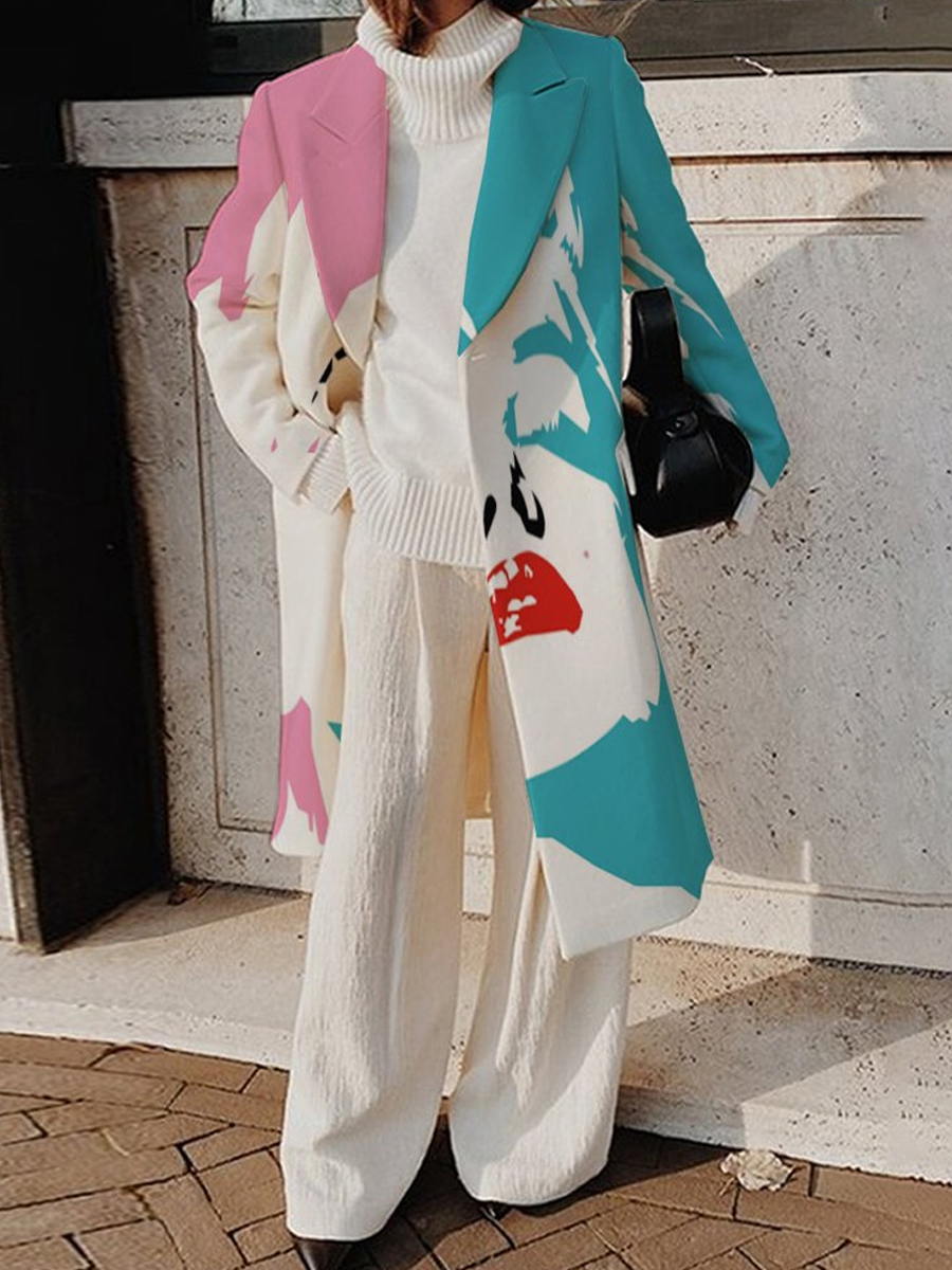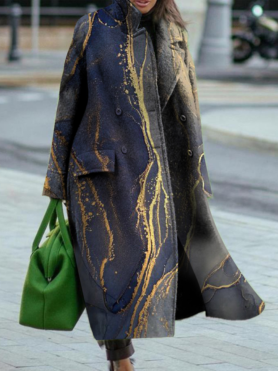 Loose Casual Abstract Print Wool Lapel Long Sleeve Coat