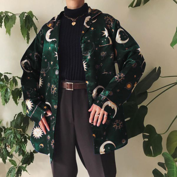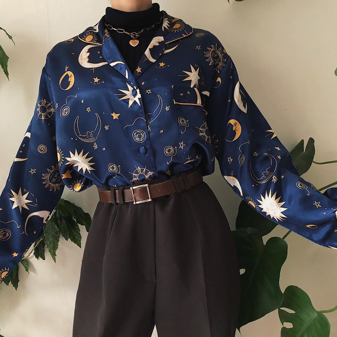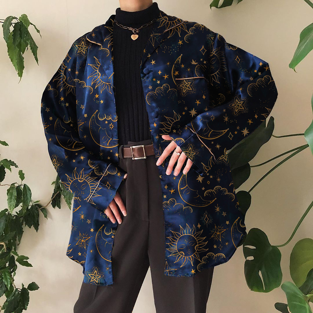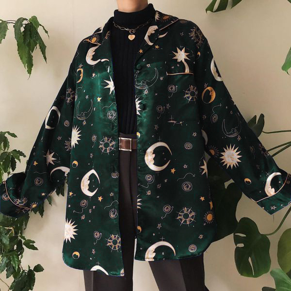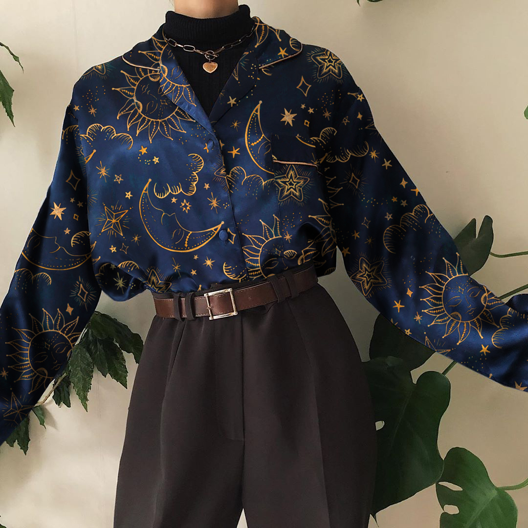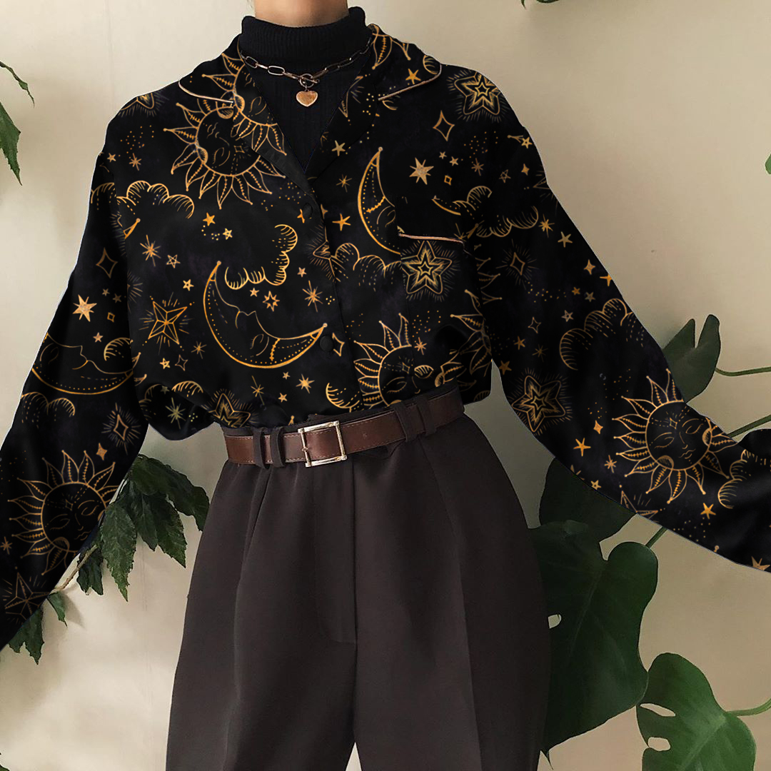 Vintage Printed Color Long Sleeve Shirt
