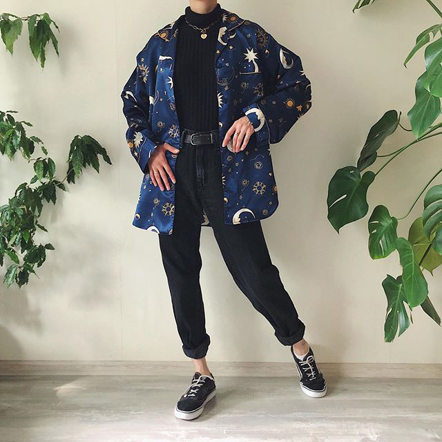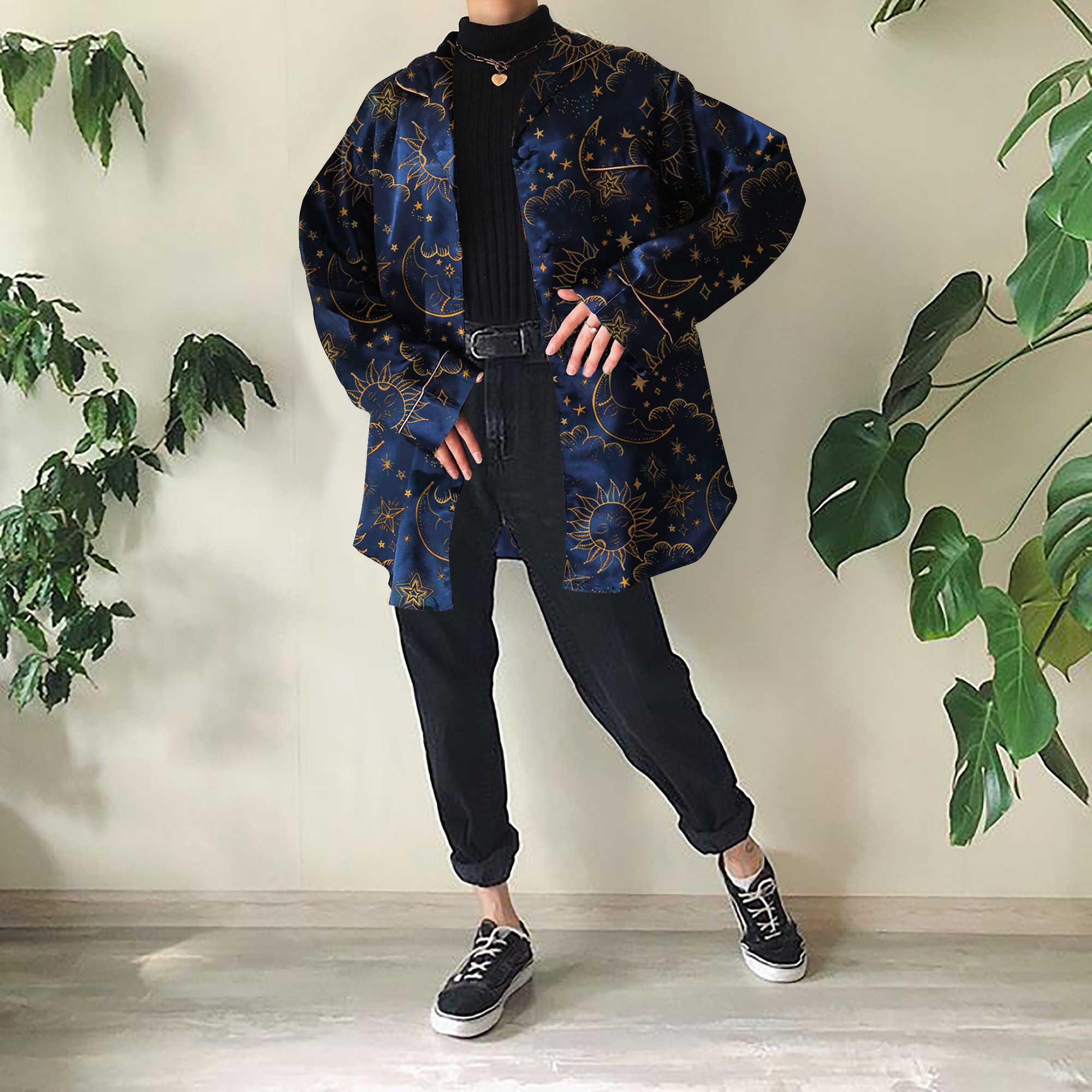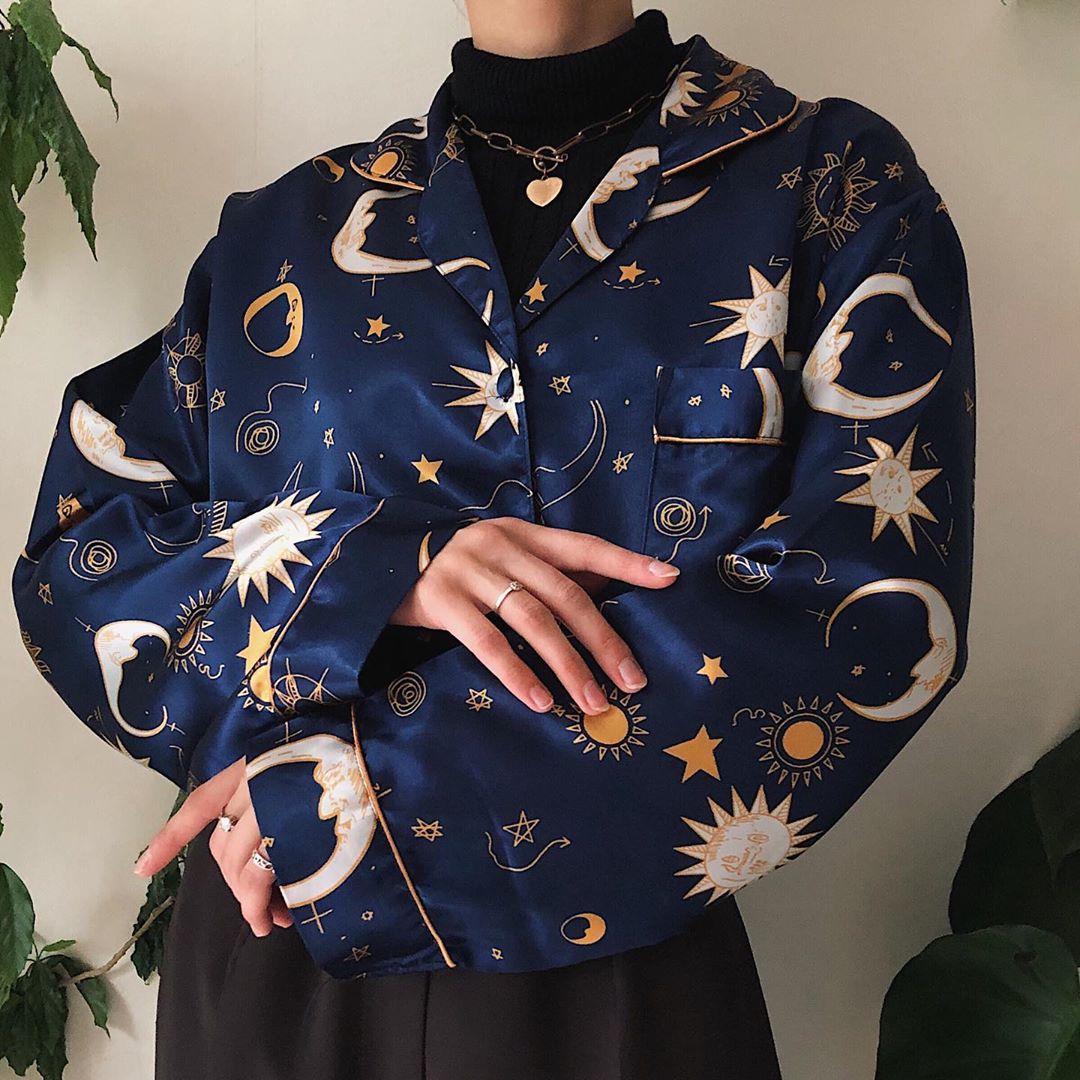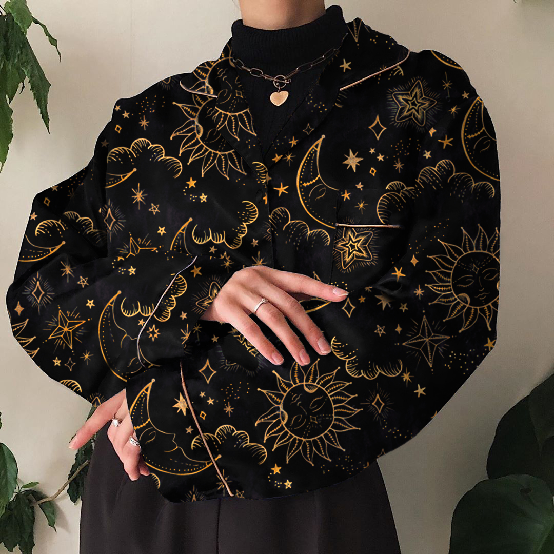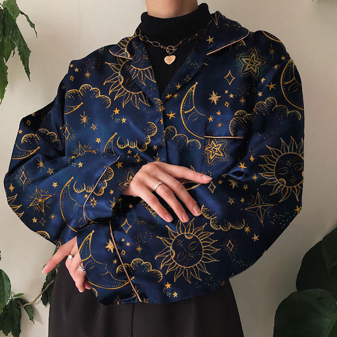 Vintage Printed Color Long Sleeve Shirt