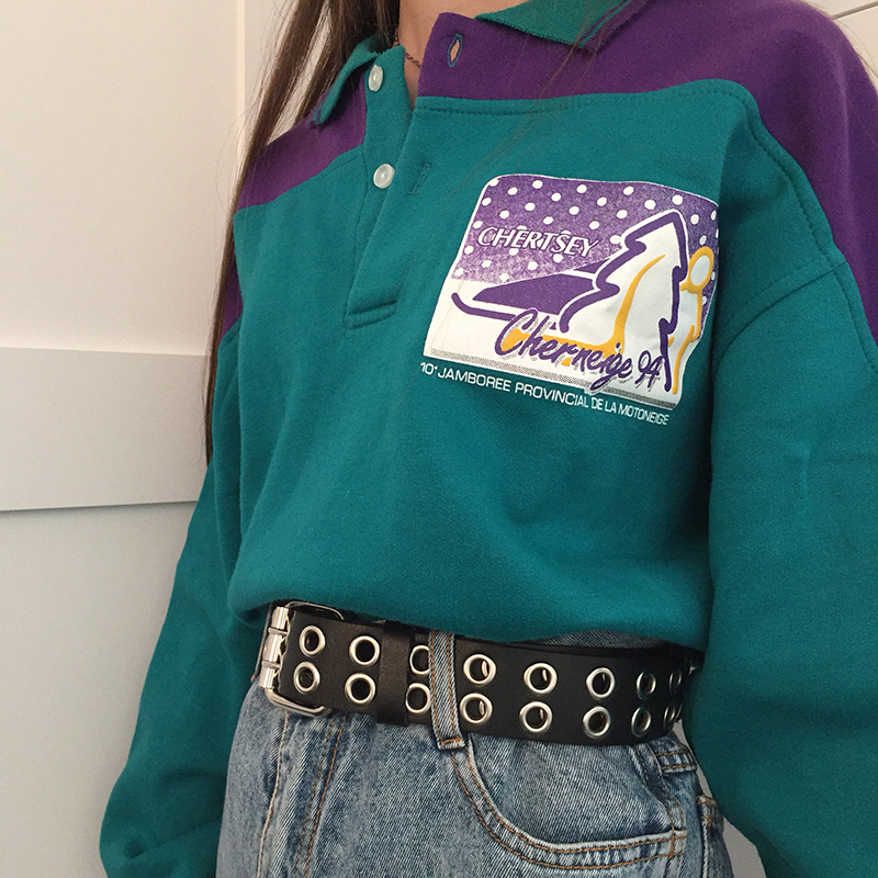 Vintage Casual Long-sleeved Color-block Printed Sweatshirt