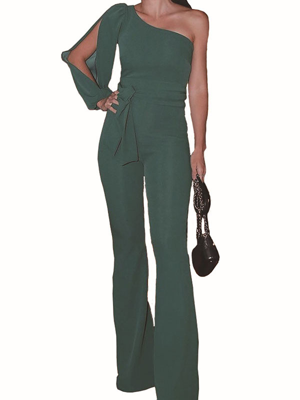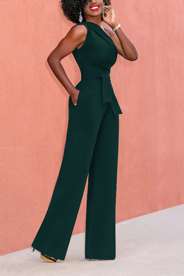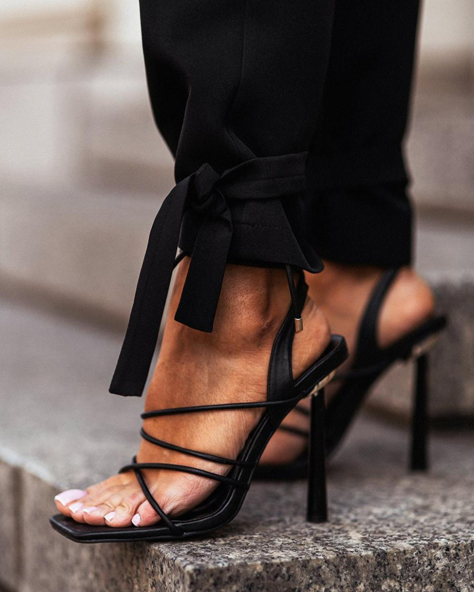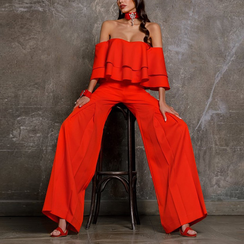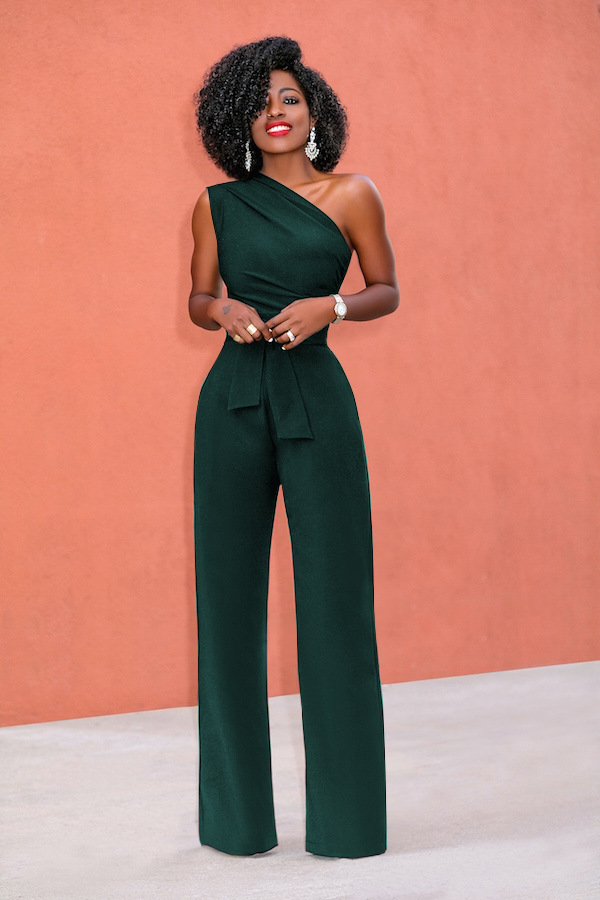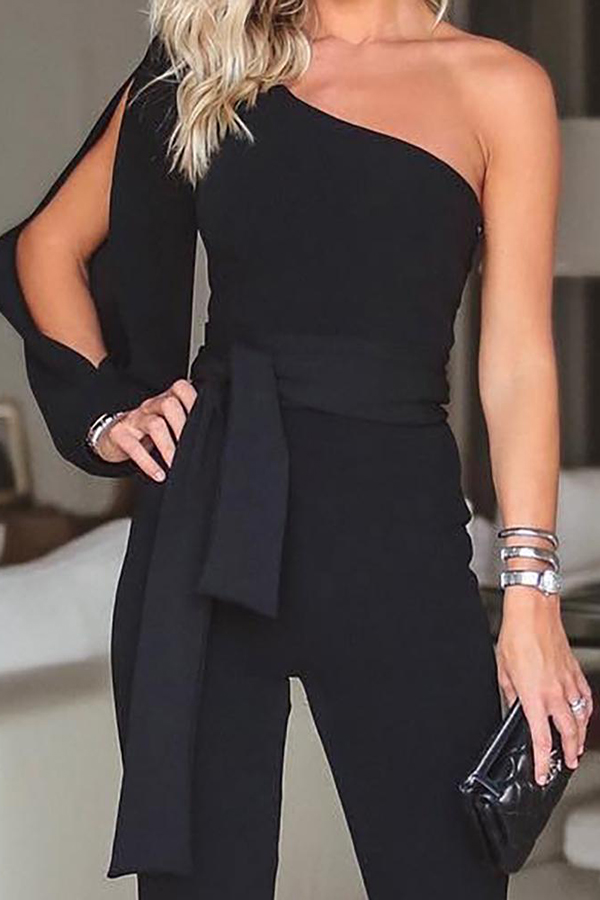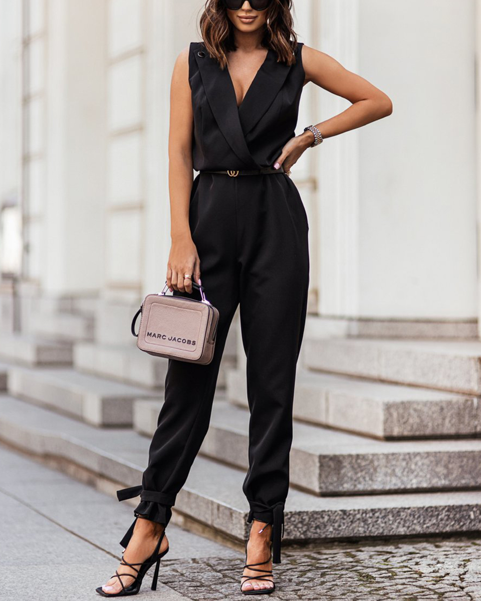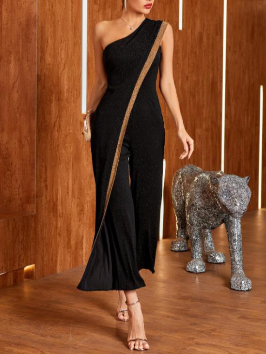 Women's Fashionable Black And White Contrast Leaf Print High-waist Jumpsuit