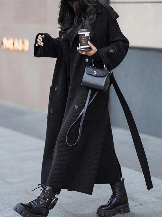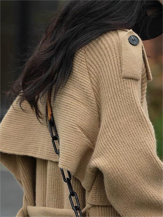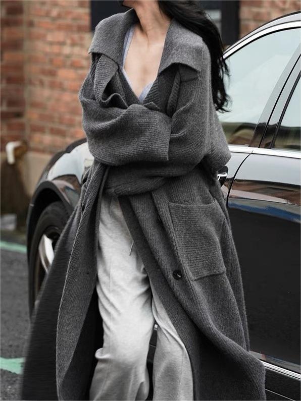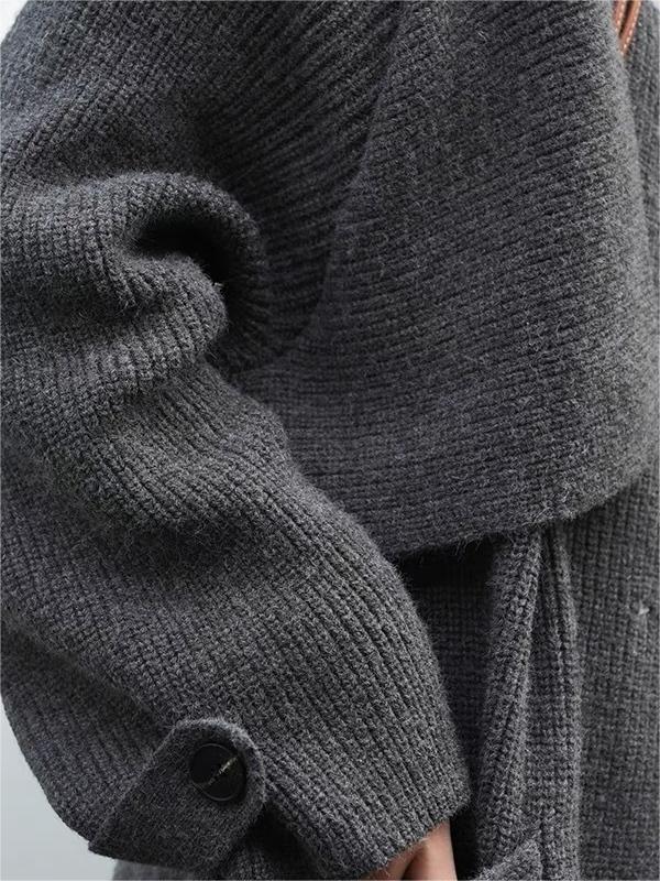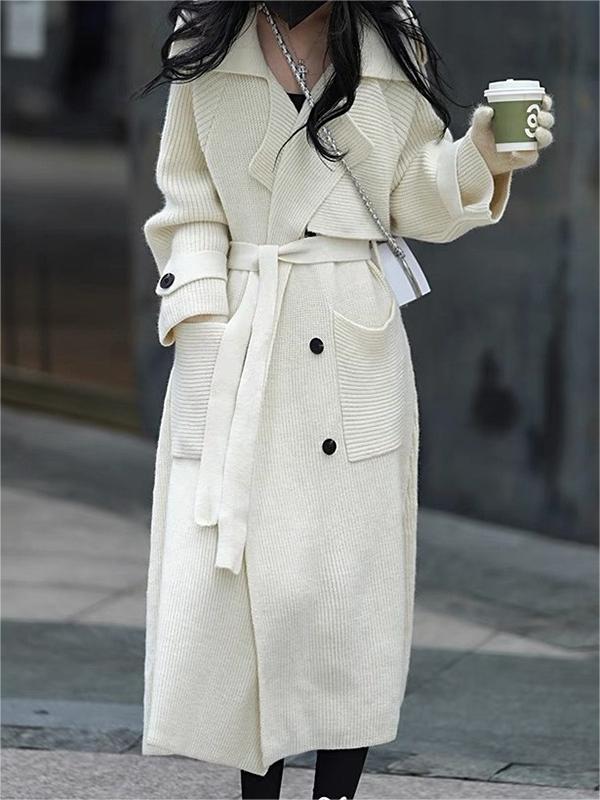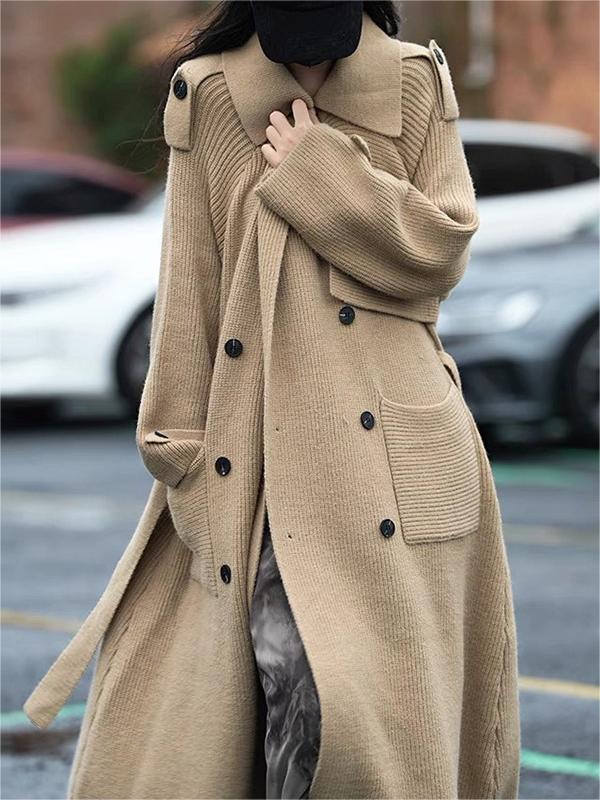 Women's Suit Collar Double-breasted Long Casual Sweater Cardigan Coat Thick Sweater